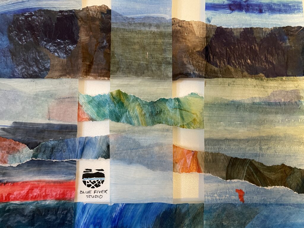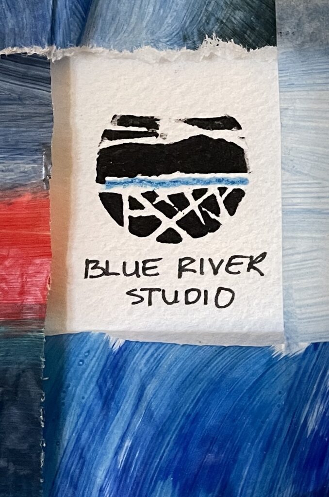 Thank you, Karen and Mary. That night, I carved an image of the poem into a round pink eraser, printed it, and added a ribbon of blue. I’d made room in my heart for myself and my work, in spite of what looms around me. Blue River Studio was born—a promise to myself to be myself, and to keep making.